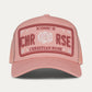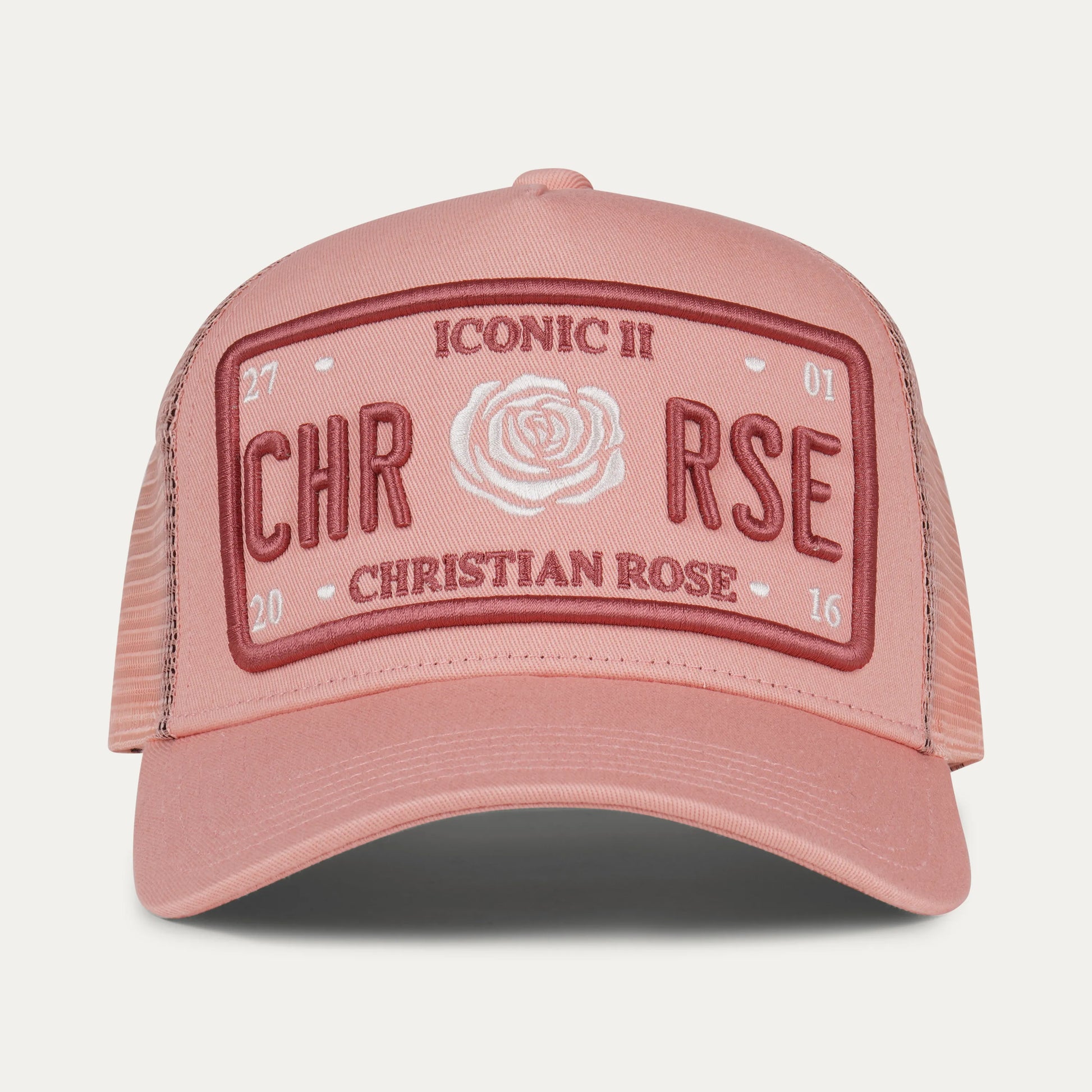 CR004DP - The Iconic II Dusk / Pink Trucker Cap introduces a softer, elevated twist on streetwear, combining a warm dusk pink tone with rose red embroidery for a look that’s both bold and refined. Featuring the updated Iconic II Plate with ‘CHR / RSE’ lettering, this cap speaks to individuality and modern identity.