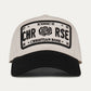 CR040WB - The White/Black Iconic II Contrast Unstructured Trucker Cap blends vintage Americana with a crisp, monochrome palette. Featuring the bold, stitched Iconic II plate front and centre, this piece balances statement style with laid-back comfort.