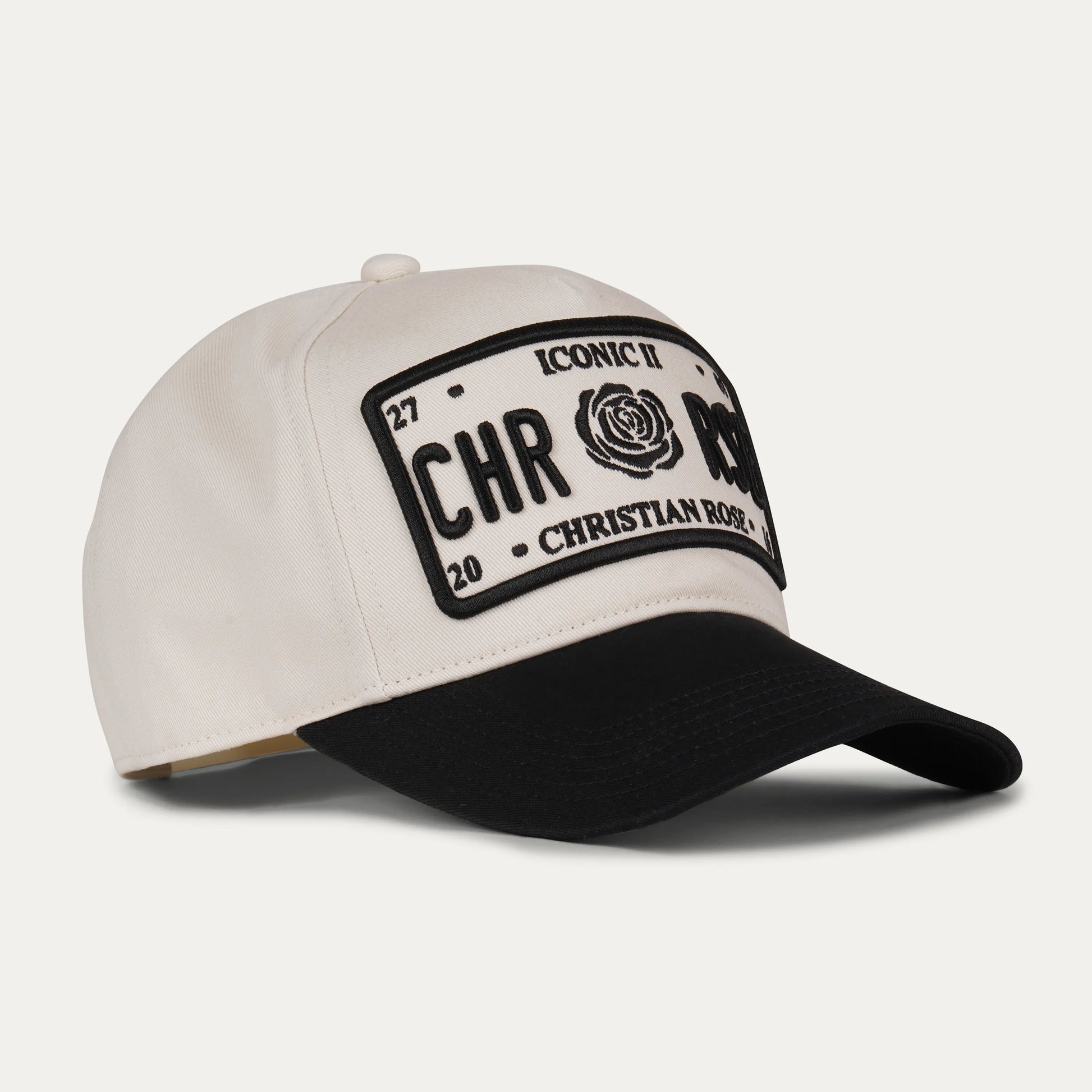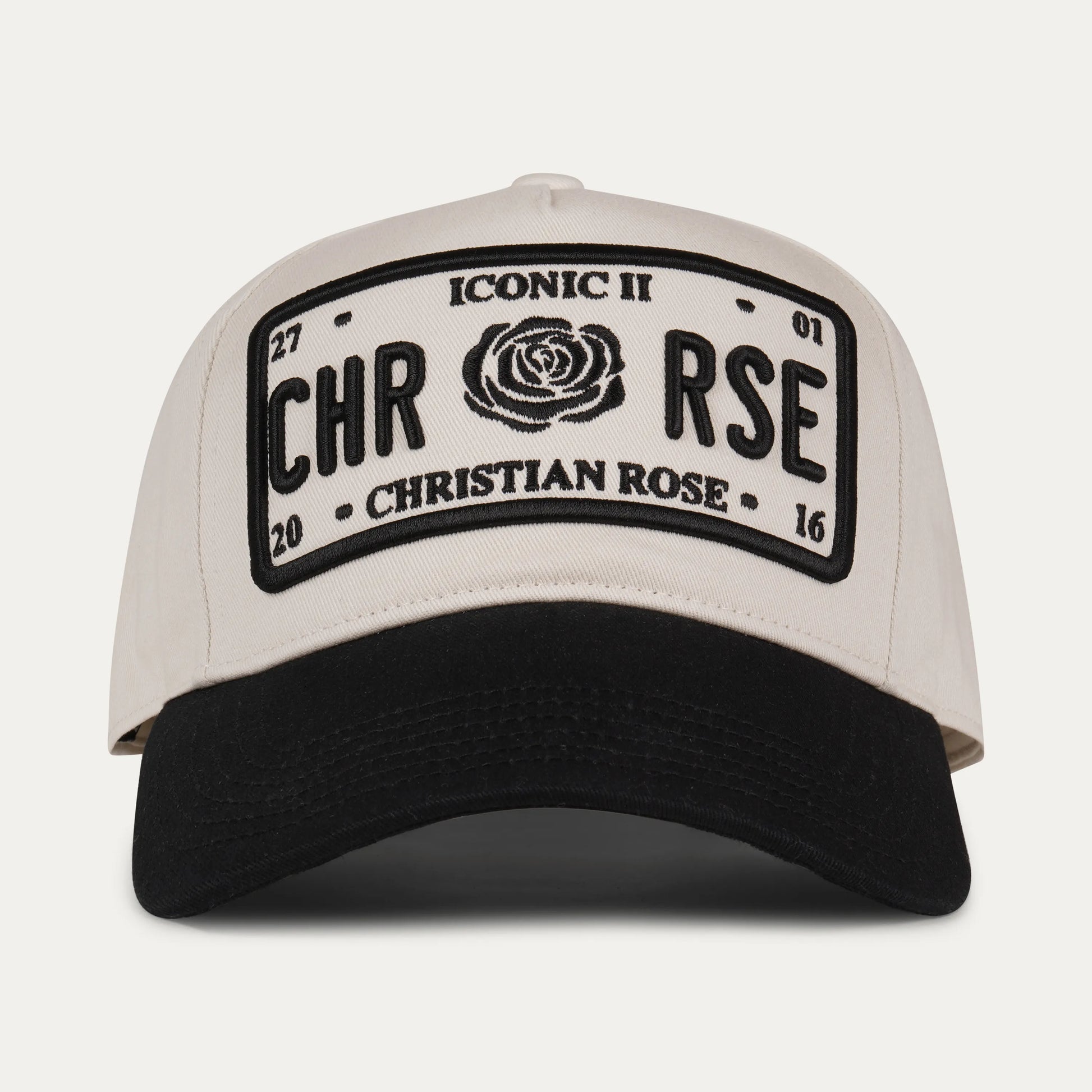 Signature Iconic II Plate: The oversized woven patch, showcasing the CHR/RSE rose emblem and coordinates, cements this as a statement piece in the Christian Rose collection.
